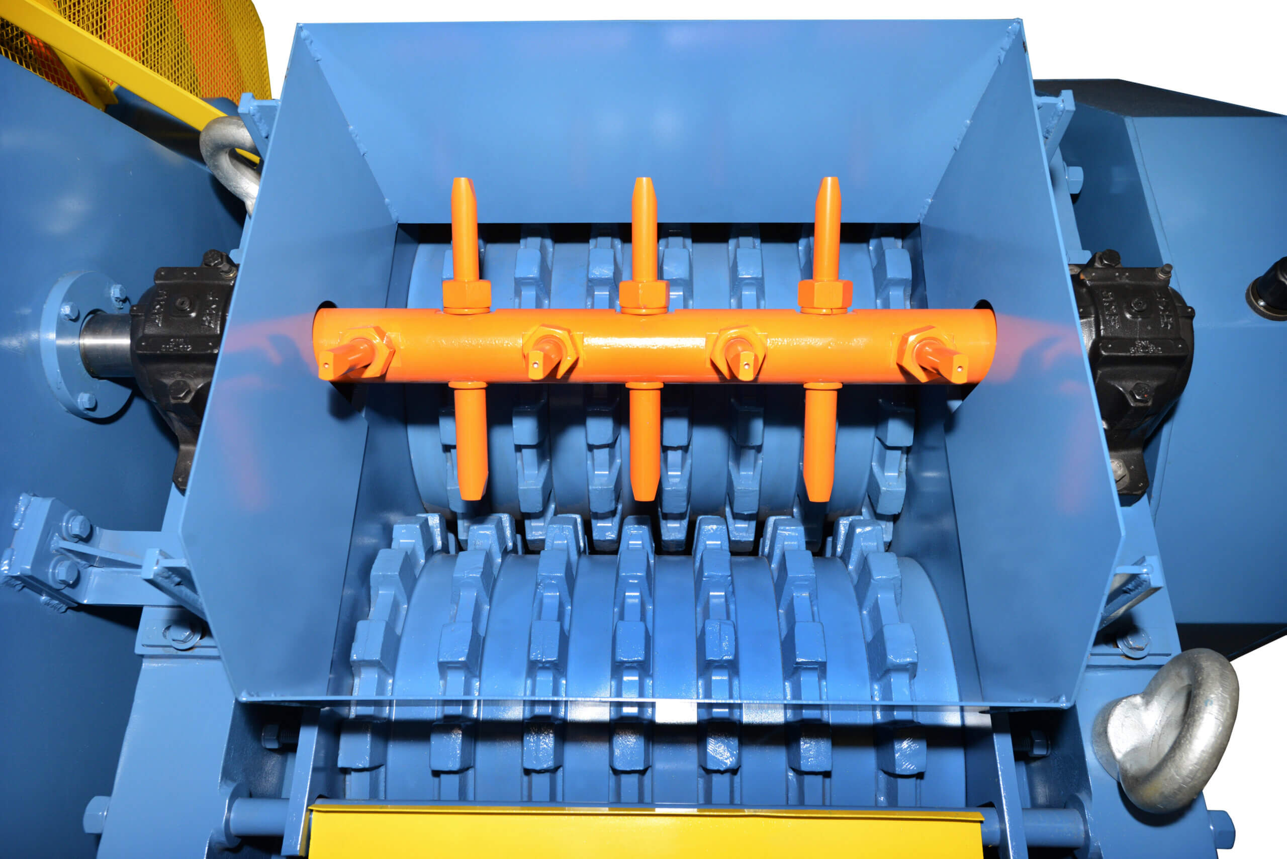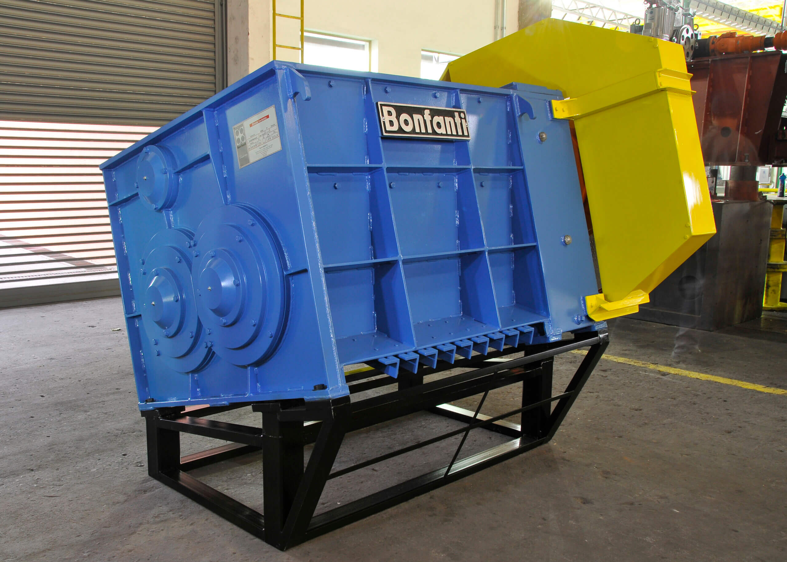 Os eixos trituradores reduzem a granulometria das pedras, com raspadeiras eliminando argila e pedras presas. Possui uma canaleta de entrada de matéria prima enclausurada para segurança. Também pode ser produzido com anéis dentados construídos com material de excelente resistência mecânica para maior trituração das pedras.