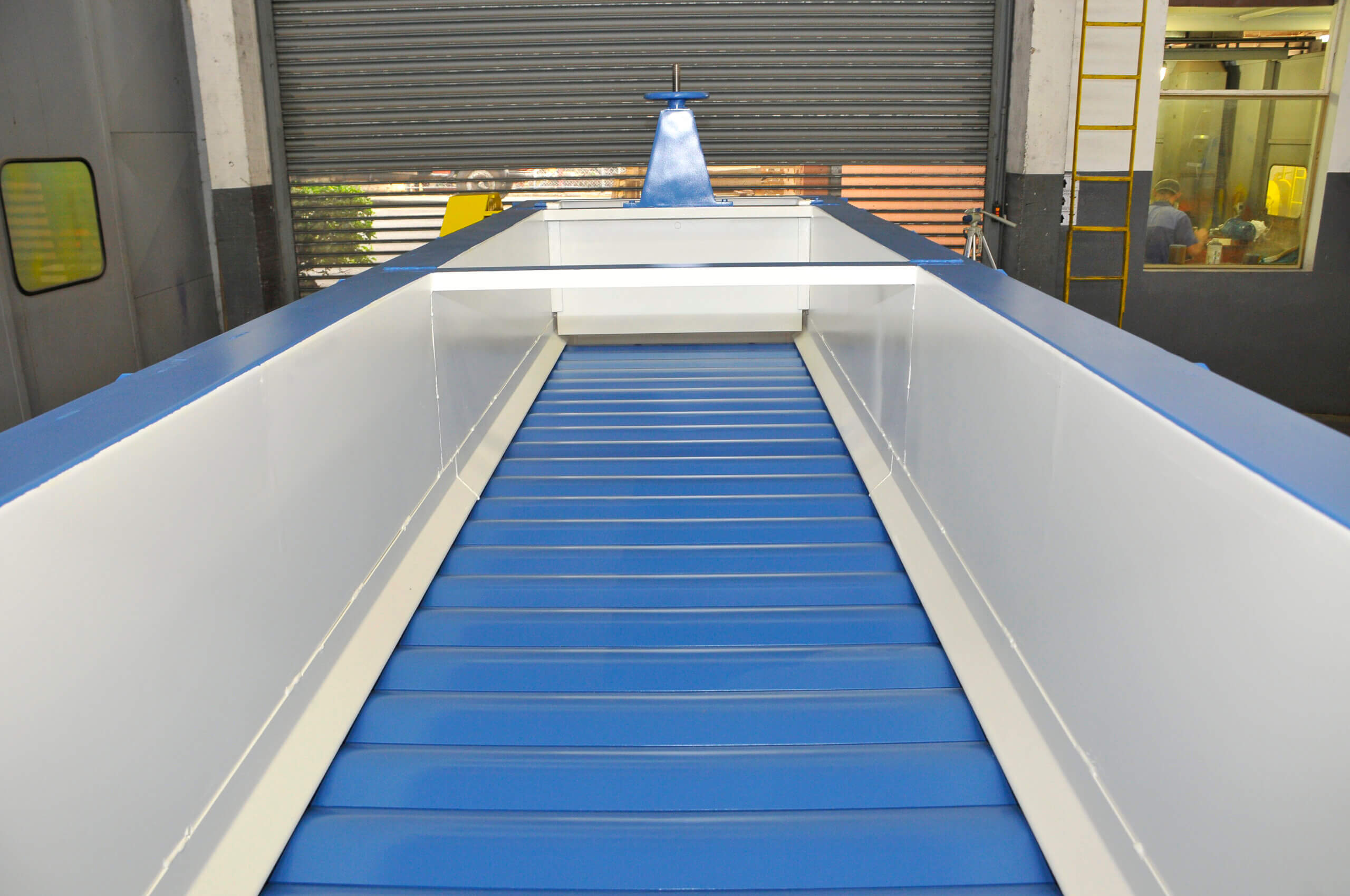 Com estrutura reforçada, dupla motorização e acesso facilitado aos componentes para manutenção, este equipamento permite ajustes precisos do fluxo através do painel elétrico, garantindo uma alimentação contínua e eficiente.